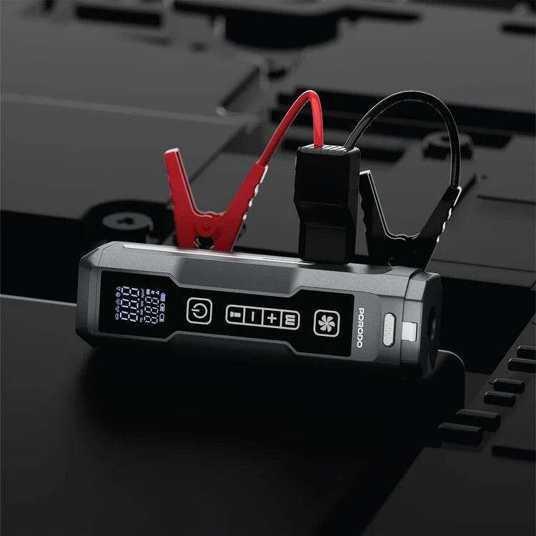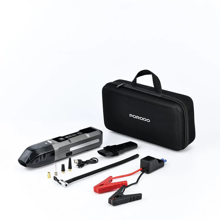 جهاز الطوارئ متعدد الاستخدامات مكنسة للسيارة وجامب استارتر ومنفاخ للعجلات مع اضاءة من Porodo