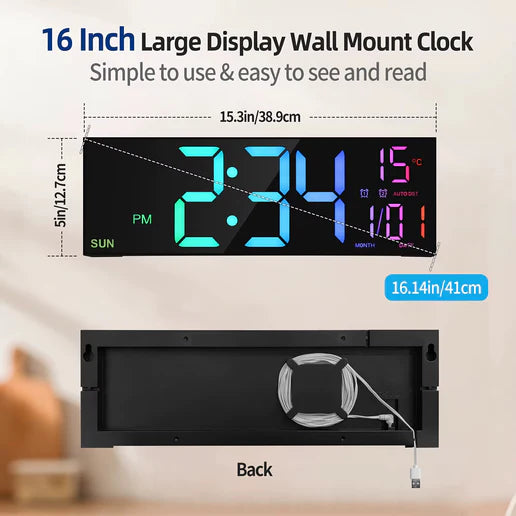 أضف لمسة عصرية إلى منزلك أو مكتبك مع ساعة الحائط الرقمية الكبيرة بتقنية الكوارتز الدقيقة. تتميز بتصميم أنيق وواضح لعرض الوقت، مع شاشة كبيرة يسهل قراءتها من مسافات بعيدة، مما يجعلها مثالية لغرف المعيشة، غرف النوم، المكاتب أو حتى الصالات الرياضية.