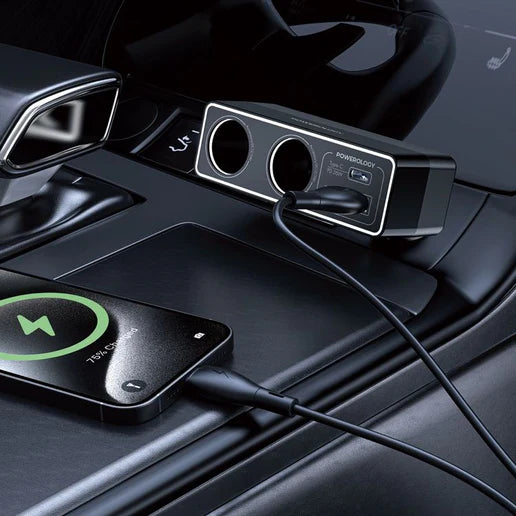شاحن سيارة بريو متعدد المنافذ مع منفذ ولاعة مزدوج بقدرة 54 واط من Powerology