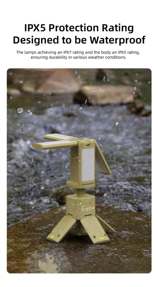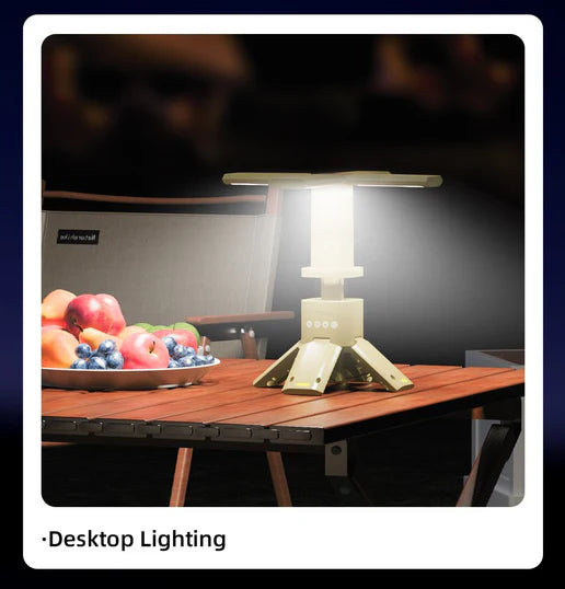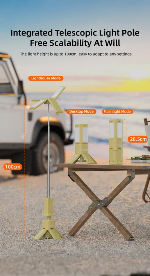 4 مصابيح LED قابلة للدوران والطي: 4 مصابيح قابلة للدوران بزاوية 360 درجة يمكن أن تضيء في اتجاه واحد أو في كل مكان، علاوة على ذلك، أضفنا مصباحًا يدويًا في الجزء العلوي من هذا الضوء الخارجي، وهو معدات تخييم متكاملة من أساسيات التخييم.