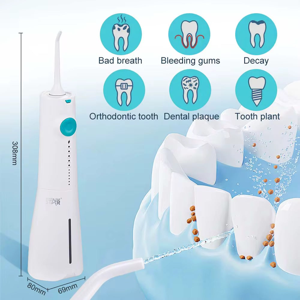 دلّل ابتسامتك بتنظيف عميق وفعّال مع جهاز تنظيف الأسنان المائي اللاسلكي ST-9818 من WINNING STAR.