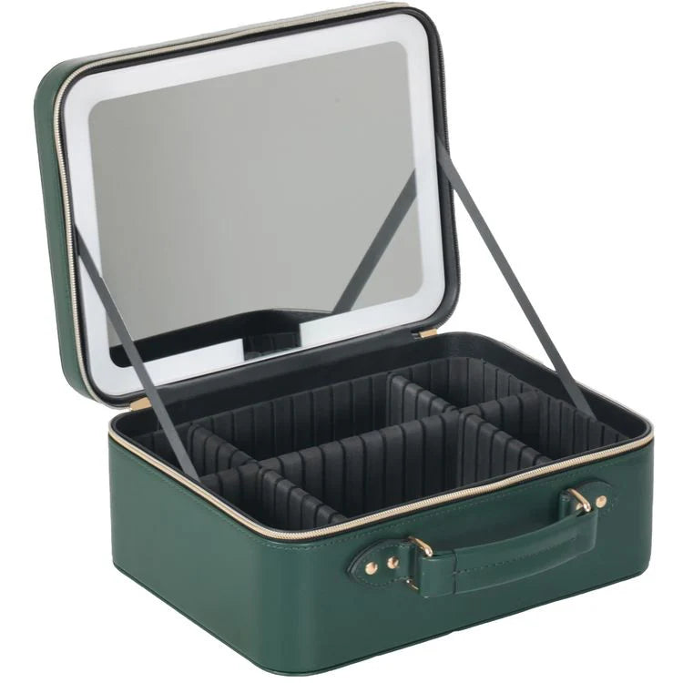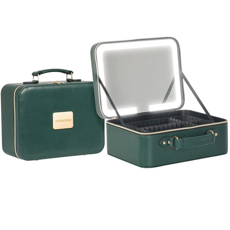 حقيبة مكياج السفر مع مرآة LED قابلة للفصل، 3 أوضاع إضاءة، تصميم عملي وأنيق من Porodo