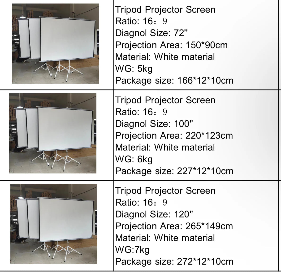 شاشة عرض قابلة للطي محمولة للبروجيكتور مع حامل ثلاثي سهل التثبيت مقاس 72 انش
