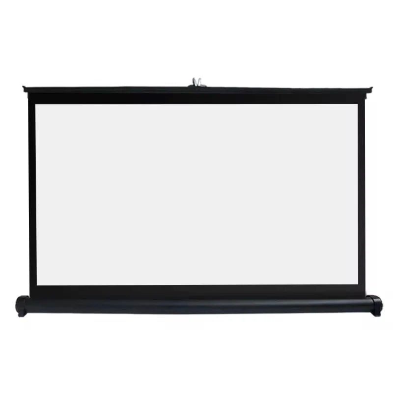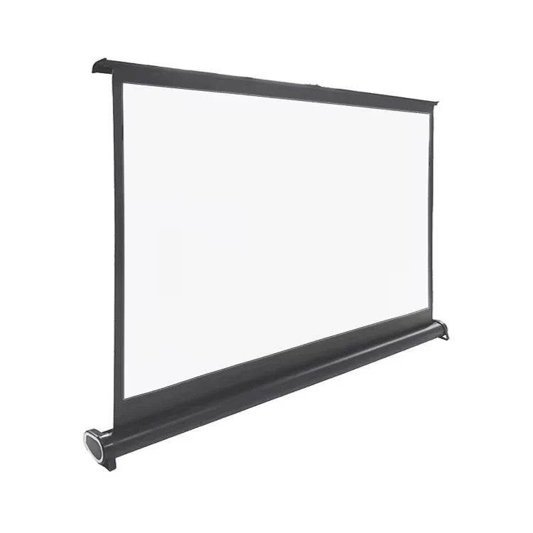 شاشة عرض محمولة للعرض المكتبي بنظام السحب للأعلى (Pull-Up)، مناسبة للاستخدام المنزلي، التعليمي، والعروض التقديمية.