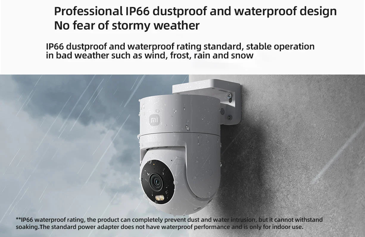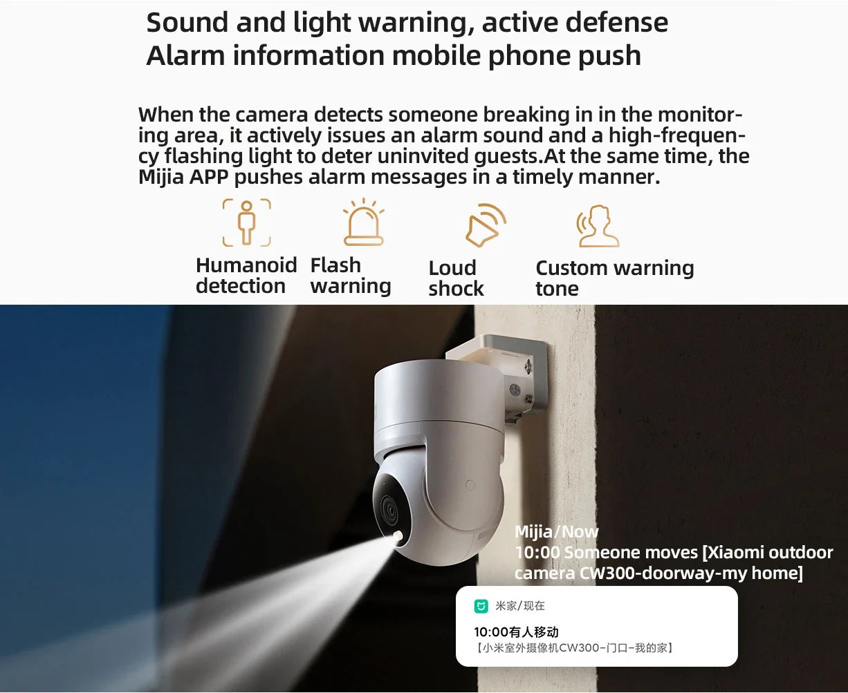 كاميرا خارجية من شاومي CW300 MBC31 بدقة صورة فائقة الوضوح 2.5K، مقاومة للرياح والمطر، مراقبة ذكية للأشخاص بتقنية الذكاء الاصطناعي، مقاومة للماء بمعيار IP66