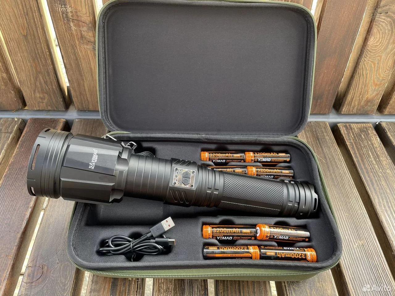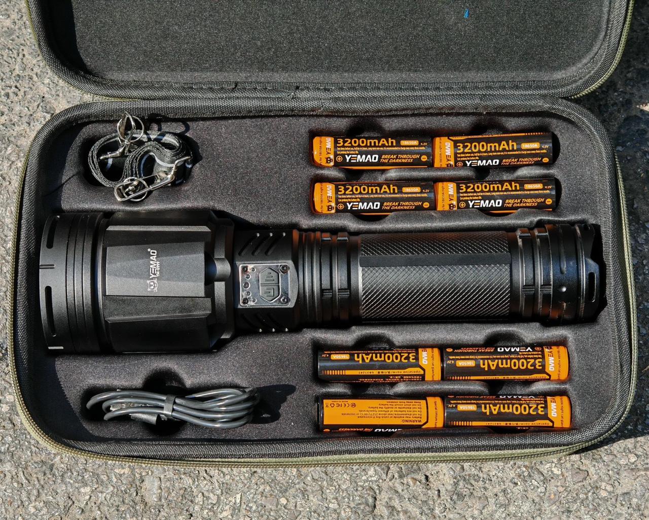 كشاف يدوي قوي من YEMAO إضاءة LED فائقة السطوع قابلة لإعادة الشحن مع بوكس لحماية وحفظ الكشاف