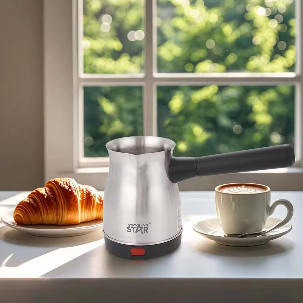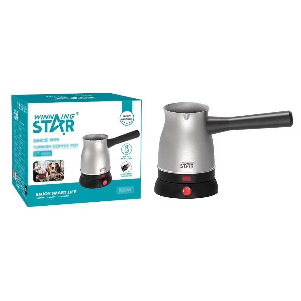 ماكينة القهوة المحمولة Winning Star ST-9895 بقدرة 800 واط مصممة لتحضير القهوة التركية بسهولة وسرعة. مصنوعة من الفولاذ المقاوم للصدأ، وهي خفيفة الوزن ومثالية للاستخدام أثناء السفر أو في المنزل.