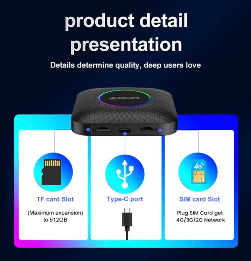 Carlink 8 + 128Gb Led Light Custom Carlinkit Car Play Smart Box Ai Box For Wireless Carplay Car Tiktok