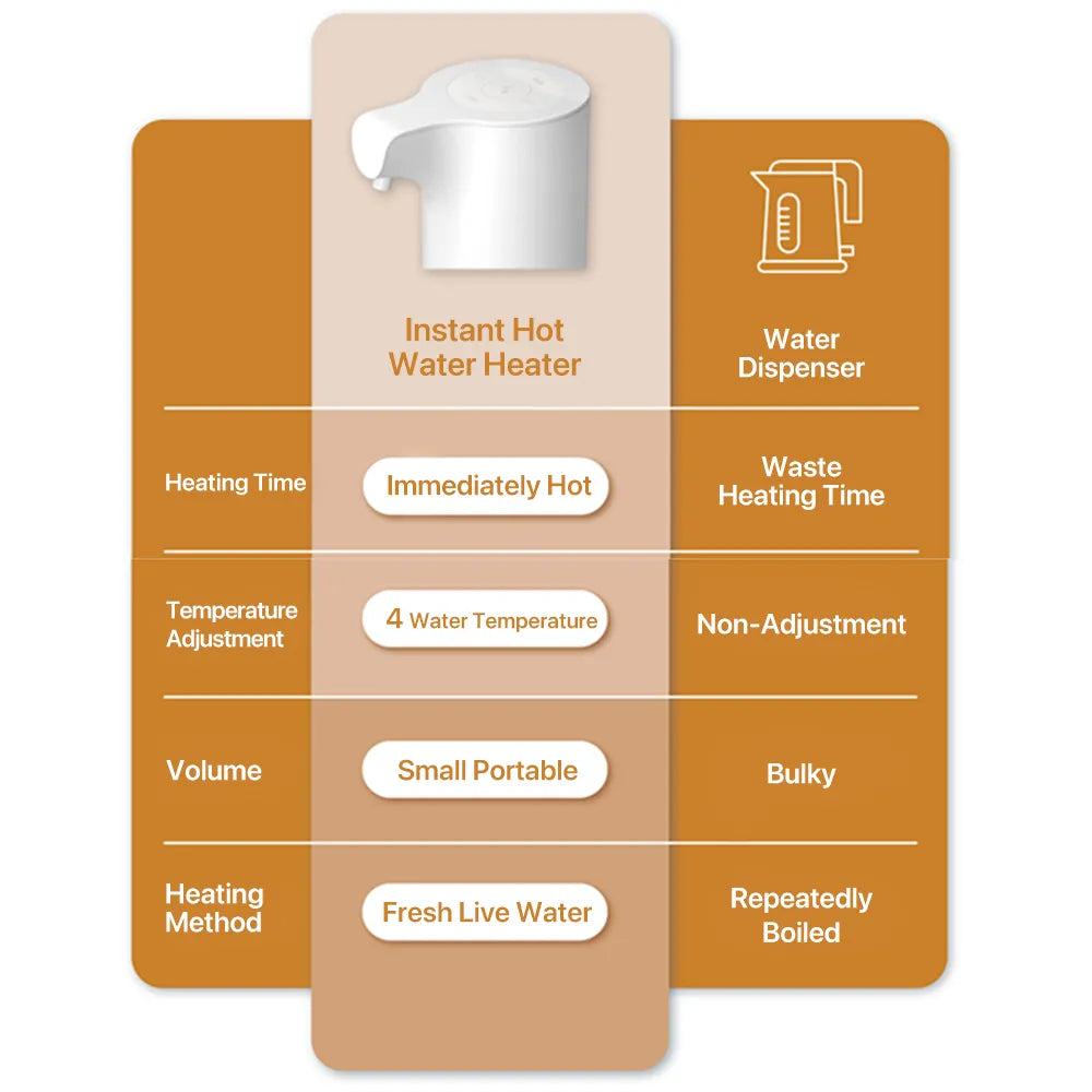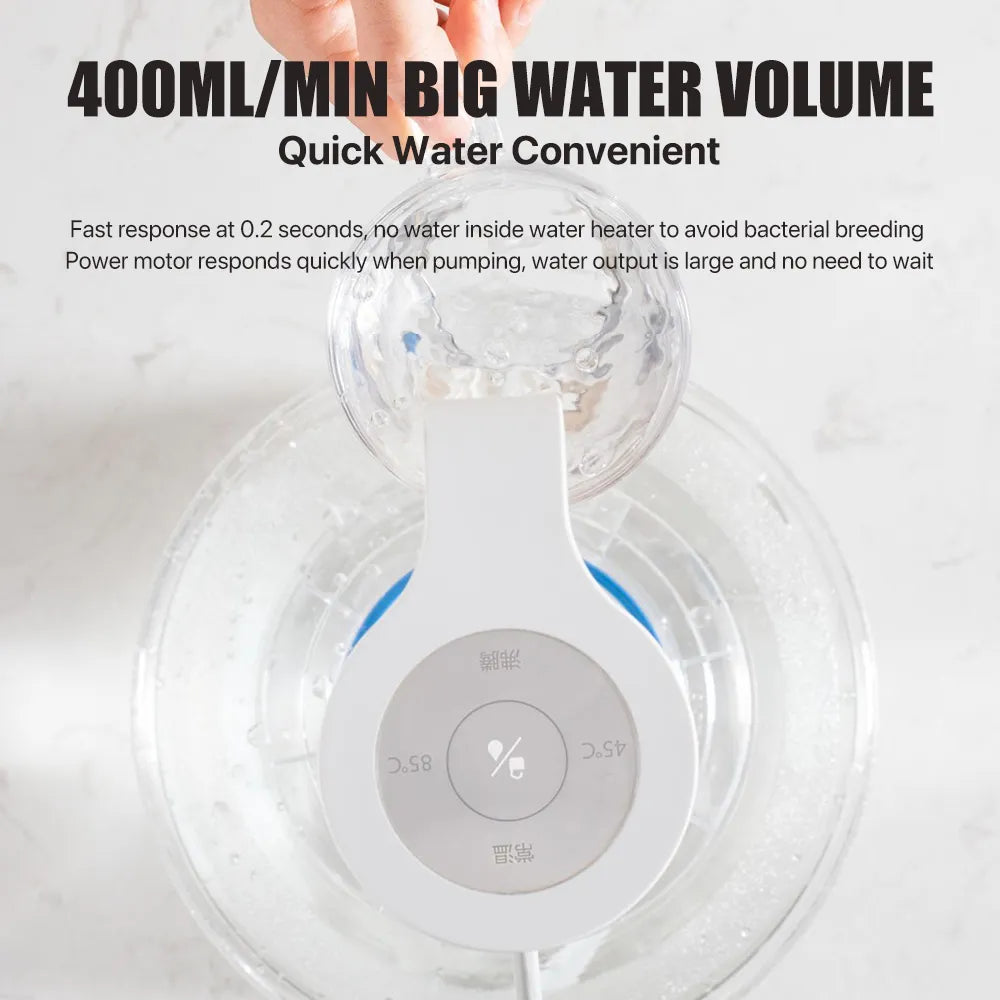 - إخراج كبير للماء يصل إلى 400 مل/دقيقة، يتيح تصريف الماء بسرعة وسهولة، ويمكنك شرب الماء الساخن في أي وقت وفي أي مكان.