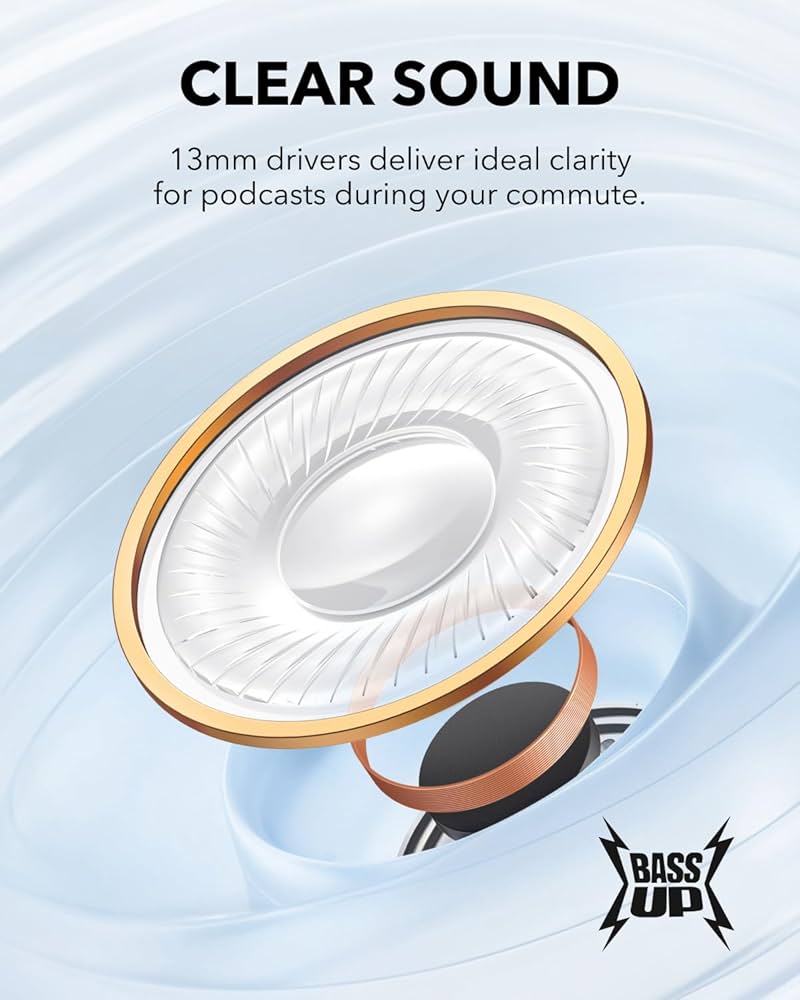 صوت نقي وعالي الجودة – تحتوي سماعات Soundcore K20i على مشغل ديناميكي بحجم 13 ملم وتقنية BassUp التي توفر صوتًا قويًا، مما يجعلها مثالية للبودكاست والموسيقى.